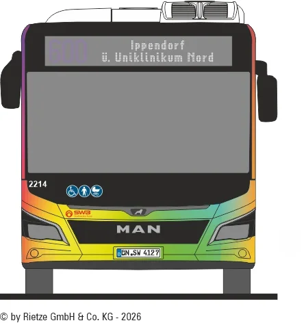 Haltung auf Rädern? Können die Stadtwerke Bonn. Der MAN 12C mit der Wagennummer 2214 ist Teil der SWB-Kampagne für Vielfalt, Toleranz und ein respektvolles Miteinander. Als einer der größten Arbeitgeber Bonns zeigen die SWB damit klar Kante. Vielfalt hat hier Vorfahrt.